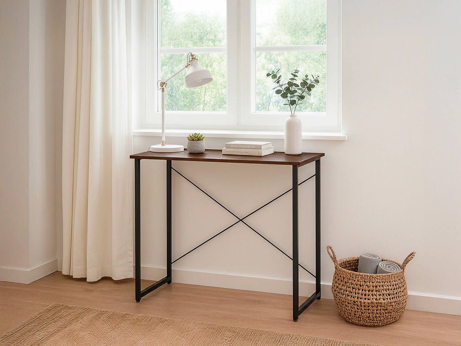 Брутальный декор и контрастная кромка позволят создать современный кабинет в стиле лофт.
