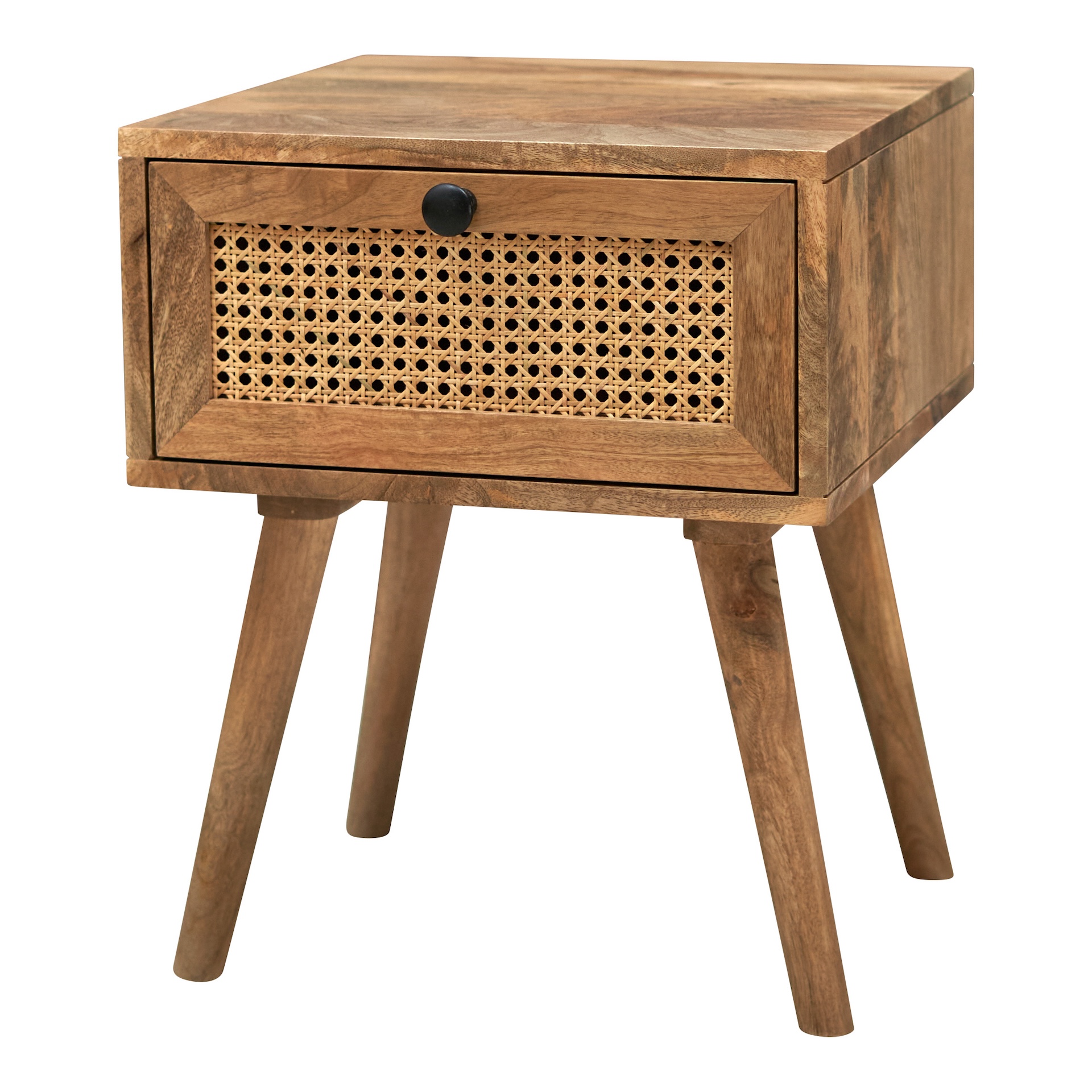 Тумбочка прикроватная MyLoft Магрит из массива — стильное решение для спальни, где ценят натуральность, лаконичность и уют. Квадратная форма и четкие линии подчеркивают скандинавский характер, а выразительная древесина манго с уникальным природным рисунком добавляет тепла и индивидуальности вашему интерьеру. Фасад ящика украшен натуральным ротангом, что создает актуальный акцент и гармонично сочетается с деревянными устойчивыми ножками. В комплекте идут две ручки на выбор: черная и золотая, чтобы вы могли подобрать вариант под свой стиль.