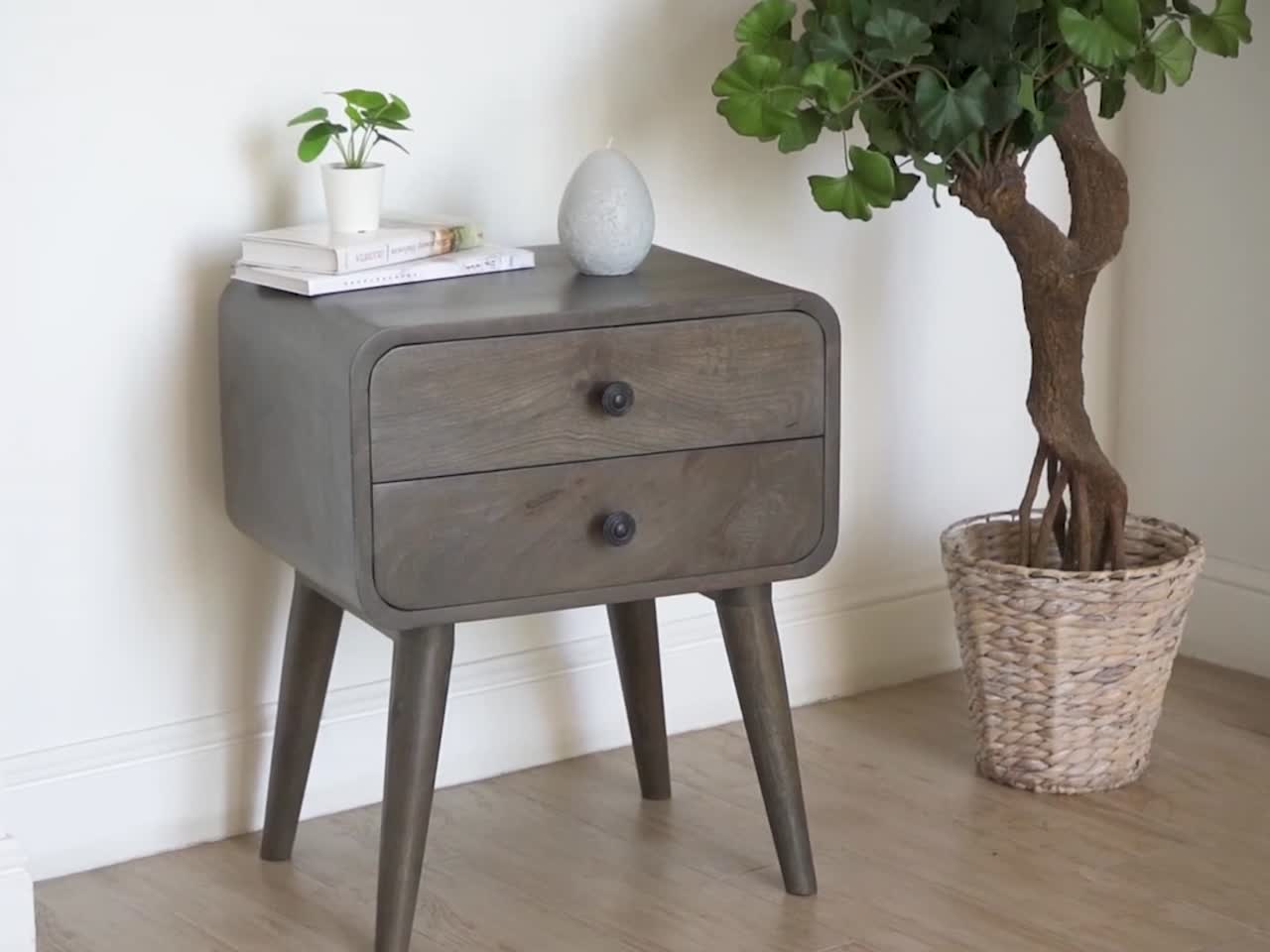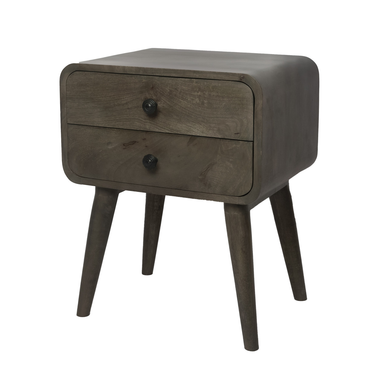 Тумбочка прикроватная MyLoft Альрик грей — стильное решение для спальни, объединяющее природную теплоту массива манго и современный скандинавский минимализм. Благодаря округлым формам и компактным размерам тумба легко впишется в интерьер, не загромождая пространство. Два вместительных ящика позволят удобно организовать хранение книг, аксессуаров или личных мелочей, которые всегда хочется держать под рукой.