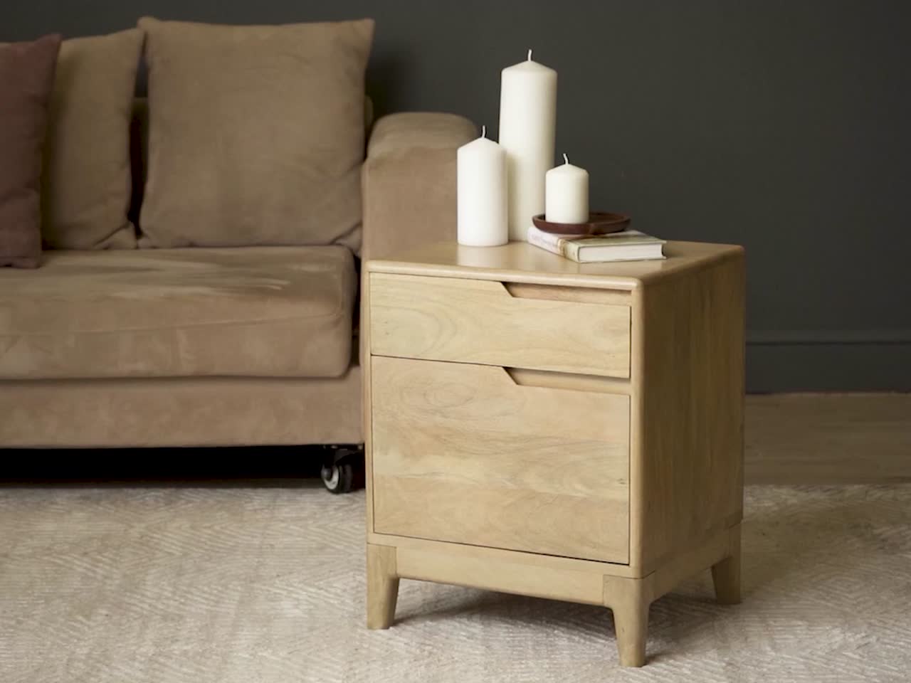два вместительных ящика деревянные ножки приятный медовый оттенок отделка выполнена с сохранением естественной структуры древесины манго гладкий фасад, покрытый немецким лаком Plantag c дополнительной защитой от царапин