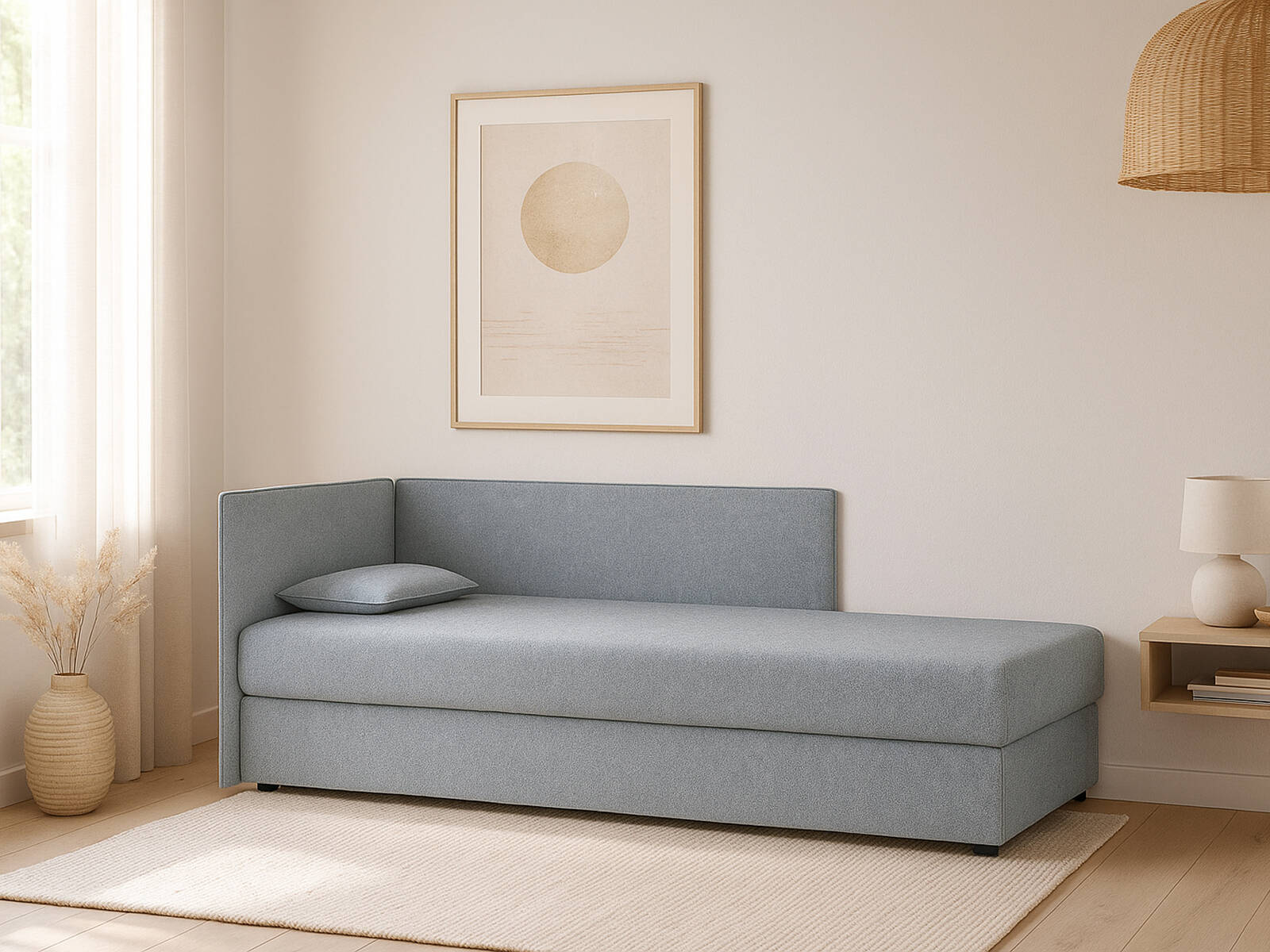 Комплектация кровати подъемным механизмом основания, который дает доступ к вместительному бельевому ящику, — удобное решение для небольших спален. Кровать MIA с подъемным механизмом — отличная возможность получить дополнительное место для хранения, даже если нет возможности использования выдвижных ящиков.