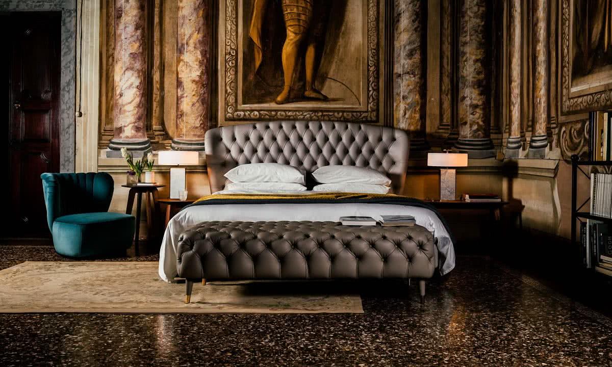 Высокое изголовье кровати Гординия сделает более комфортным ваш отдых. Такая кровать отлично подойдет для создания изысканного интерьера спальни.