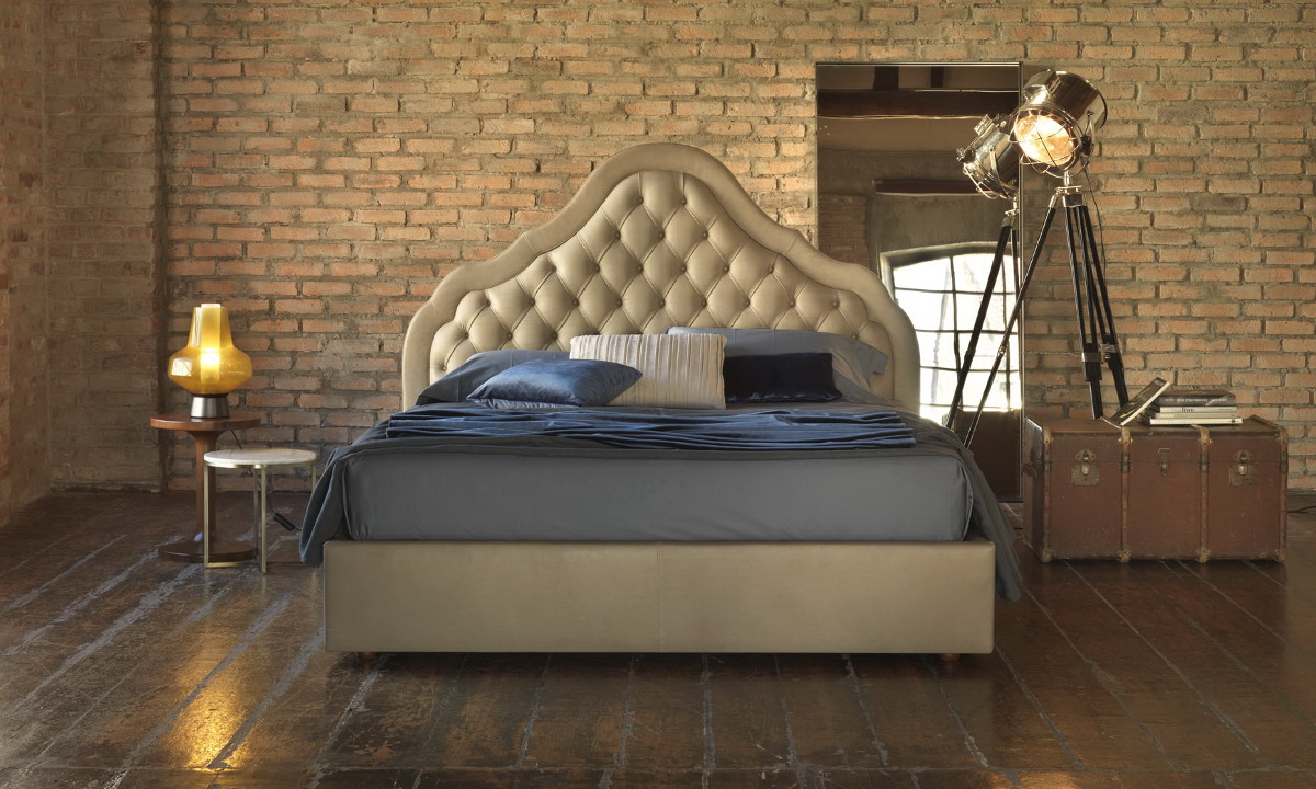 Эффектный внешний вид кровати Меконг придает отделка кожей (экокожей).