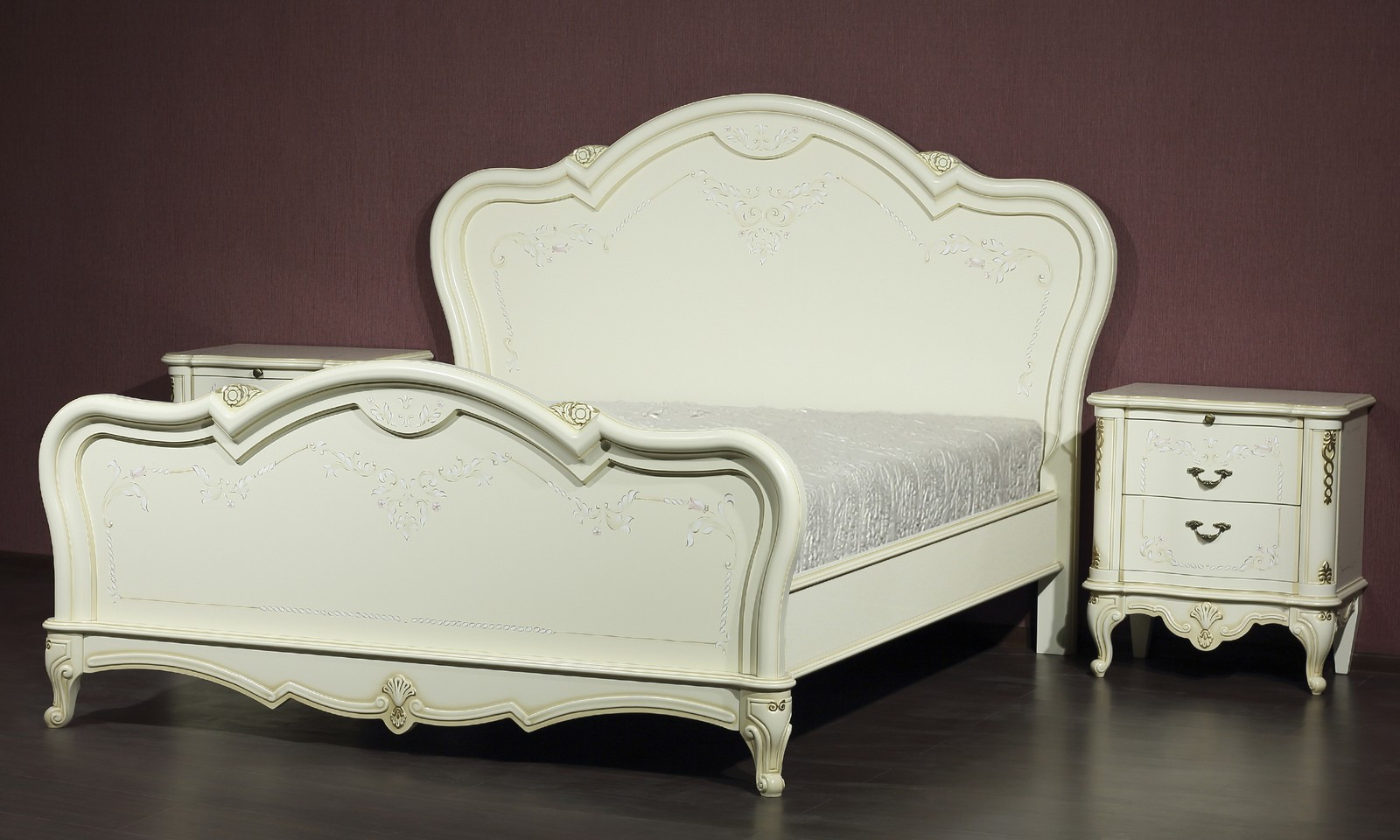 - Высокое изголовье и изножье с выразительной формой и изысканным декором;