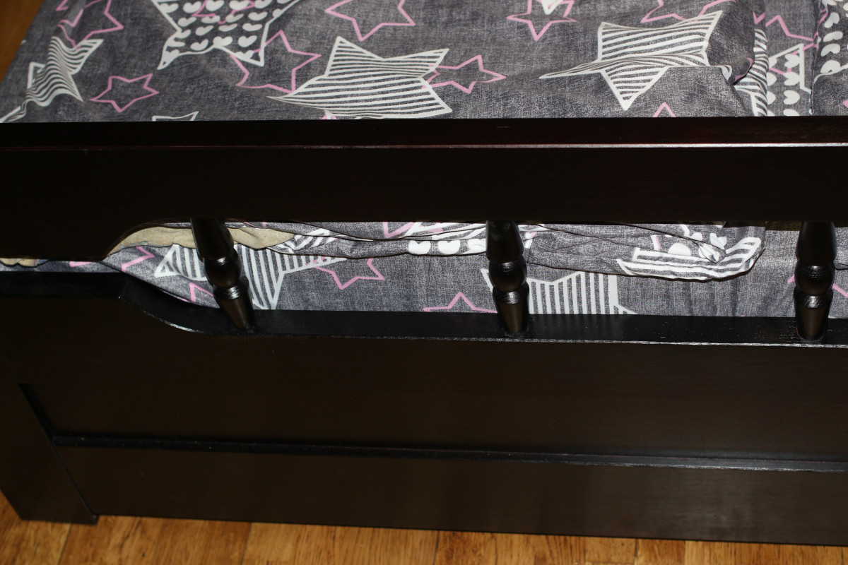 - Основание — поперечные брусья из массива и ДВП 4–5 мм.