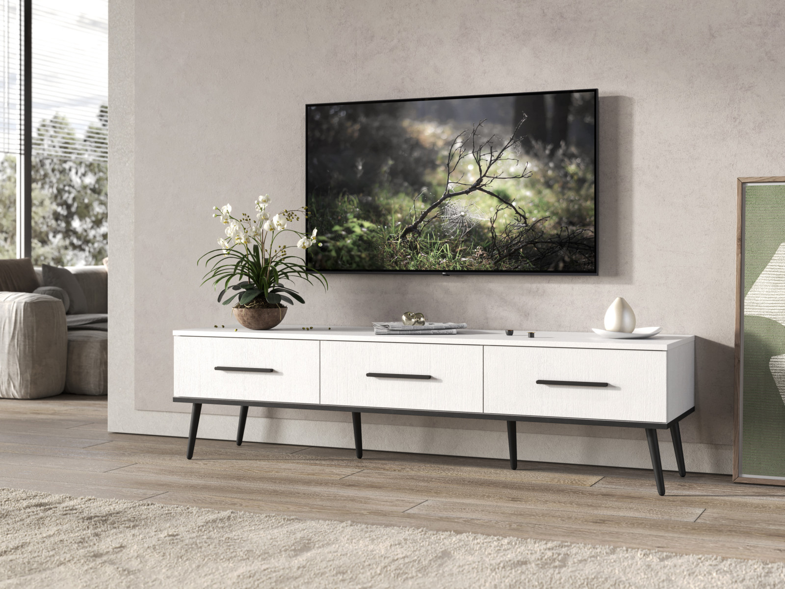 Удобные выдвижные ящики и вместительные полки позволят организовать хранение всех ваших медиаустройств и аксессуаров, сохраняя пространство в идеальном порядке.