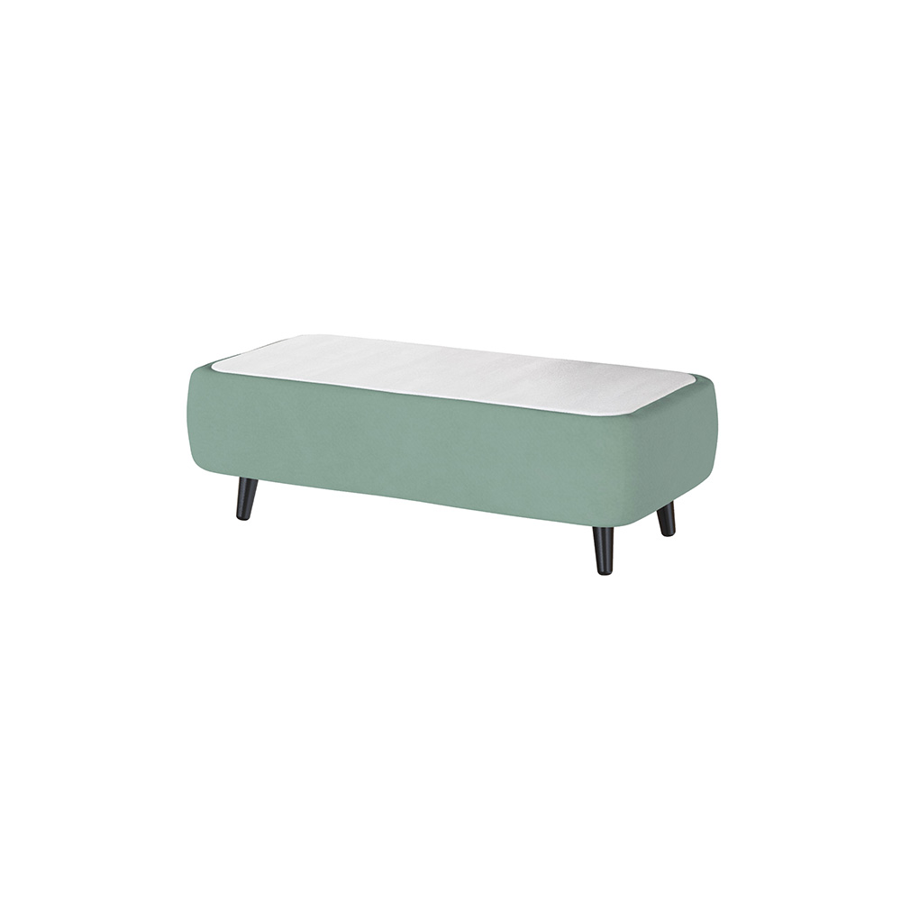 Материал: каркас - ЛДСП, столешница - МДФ в пленке ПВХ, обивка - двуслойный велюр, опоры - массив.