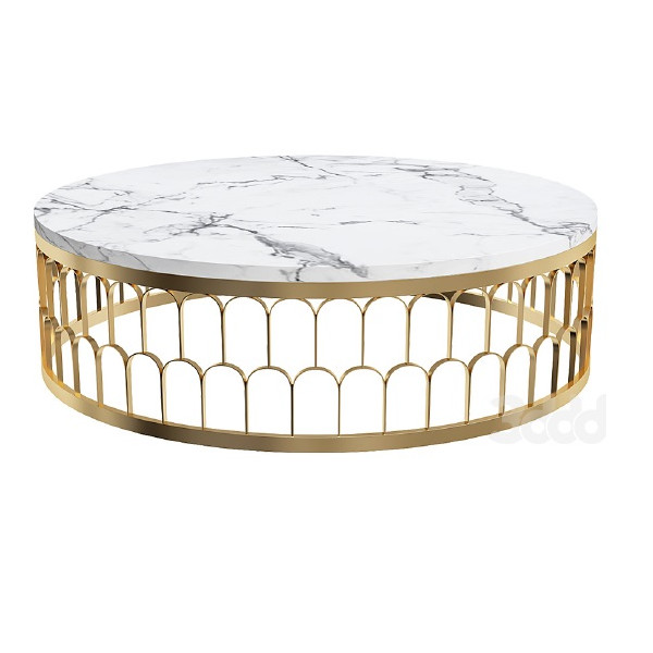 Журнальный стол FreeDom Коллизей — это стильный акцент для современной гостиной, который сразу привлекает внимание своим оригинальным дизайном. Круглая столешница с имитацией мрамора гармонично сочетается с изысканным металлическим основанием золотистого оттенка, создавая ощущение роскоши и легкости.