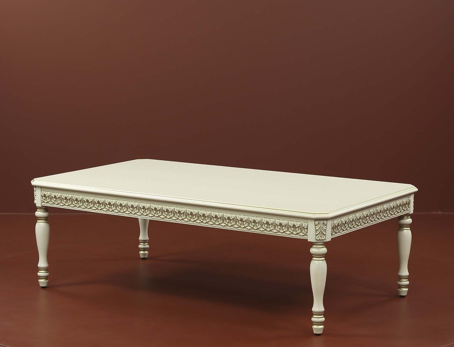 Журнальный стол Юта Альт 19-11 — элегантное решение для гостиной, кабинета или просторной спальни. Классическая прямоугольная форма, изысканная резьба по периметру и точёные ножки придают столу утончённый, благородный вид, который украсит как традиционный, так и современный интерьер. Модель выполнена в светлой цветовой гамме, что визуально добавляет лёгкости даже крупной мебели.